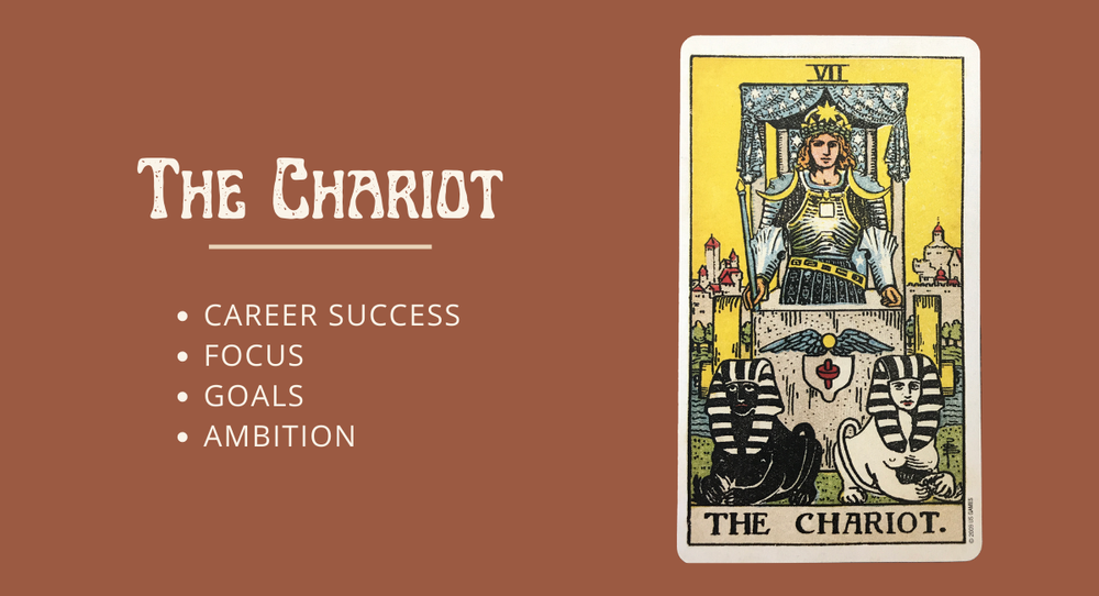 The Chariot Tarot Card Meaning / The Chariot Tarot Elements. The clue is in this card's numerology. The chariot tarot card represents facing challenges and completing your goals by ambition, concentration, and willpower. It's directed, controlled, and has a goal in mind. Each suit contains fourteen cards (2×7); The chariot is one of the birth cards for those born under the zodiac sign of cancer.